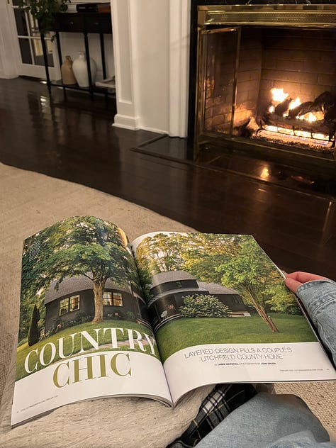 Besides traveling to Utah and Litchfield this month, I enjoyed lots of quiet time with my family at my parent’s home. We took daily walks to the pond to watch the ducks, and in the evening watched a show or read by the fireplace. The last of indoor fire season, before we transition to bonfire season (so much to look forward to!)